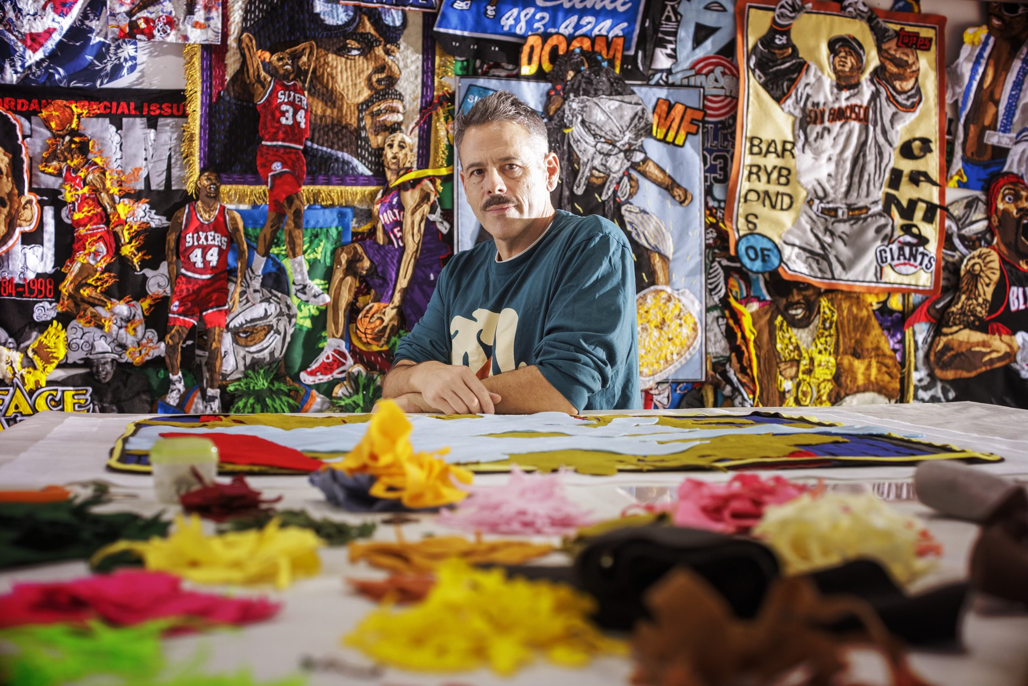 Billy Kheel transforms felt and thread into captivating soft sculptures, wall hangings, portraits, and installations. Drawing on historical fabric techniques, his work commemorates and critiques the worlds of sports and pop culture. By using these materials, Billy challenges the traditional boundaries between art and craft. Across all his series, a signature sense of humor and warmth infuses his creations.